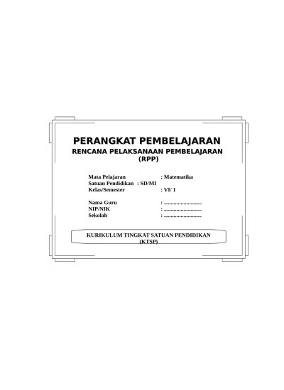 View rpp matematika kelas vi ktsp.doc from aa 1perangkat pembelajaran rencana pelaksanaan pembelajaran (rpp) mata pelajaran satuan pendidikan kelas/semester .