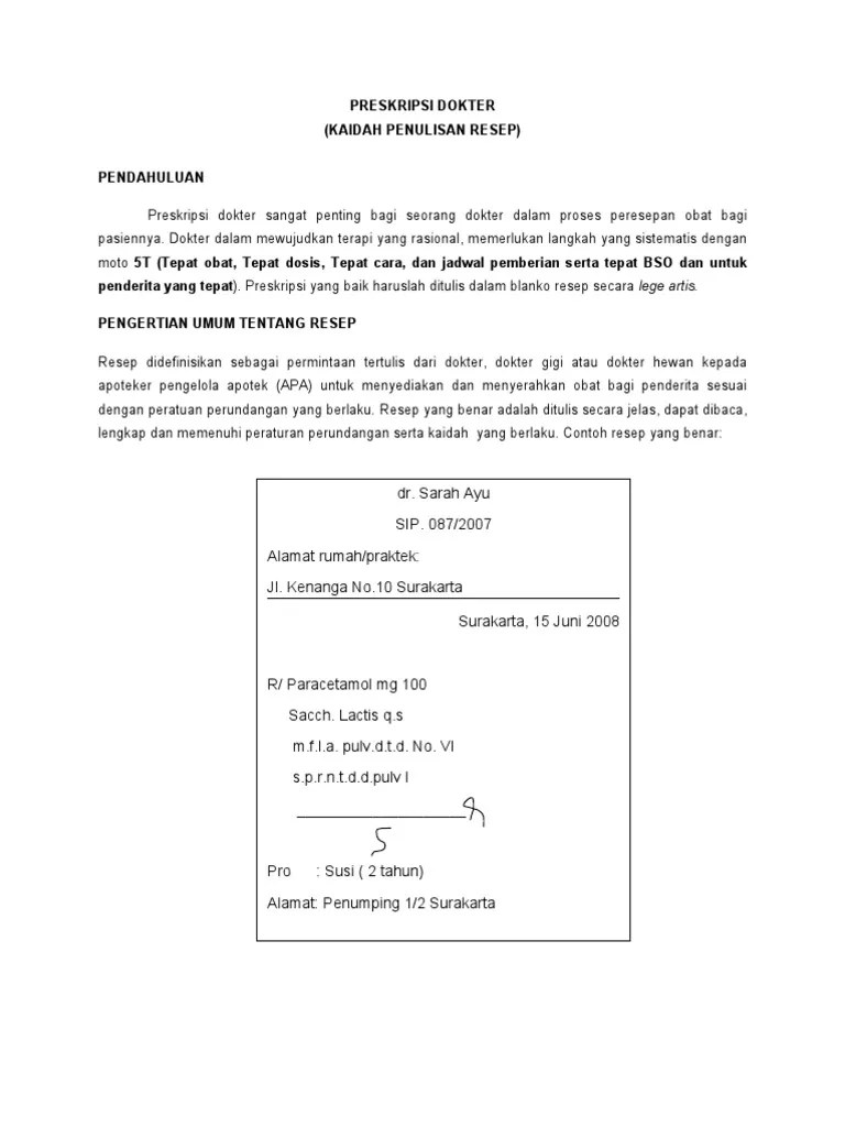 Tentang keterampilan khusus menulis resep obat secara bijak dan rasional (tepat indikasi,. Apabila penderita anak, harus dituliskan umur atau berat badan. Obat yang ditulis pada resep sudah cocok dengan umur si anak. Yang berhak menulis resep ialah dokter, dokter gigi, terbatas pada. Tak hanya itu, dokter juga akan menulis banyaknya obat yang diresepkan.